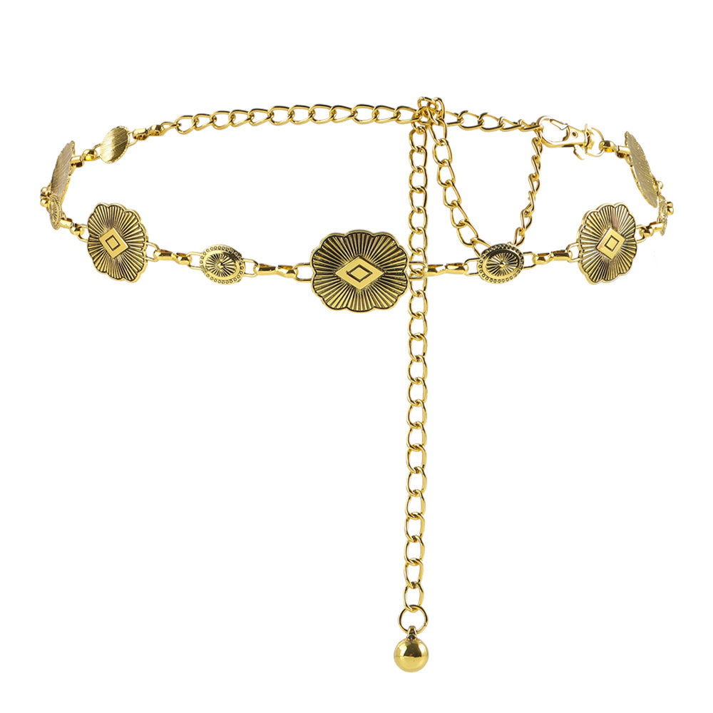 Vintage Ethnic Style Metal Waist Chain Do Old Craft Carved Body Chain Elegant Temperament Ladies Accessories