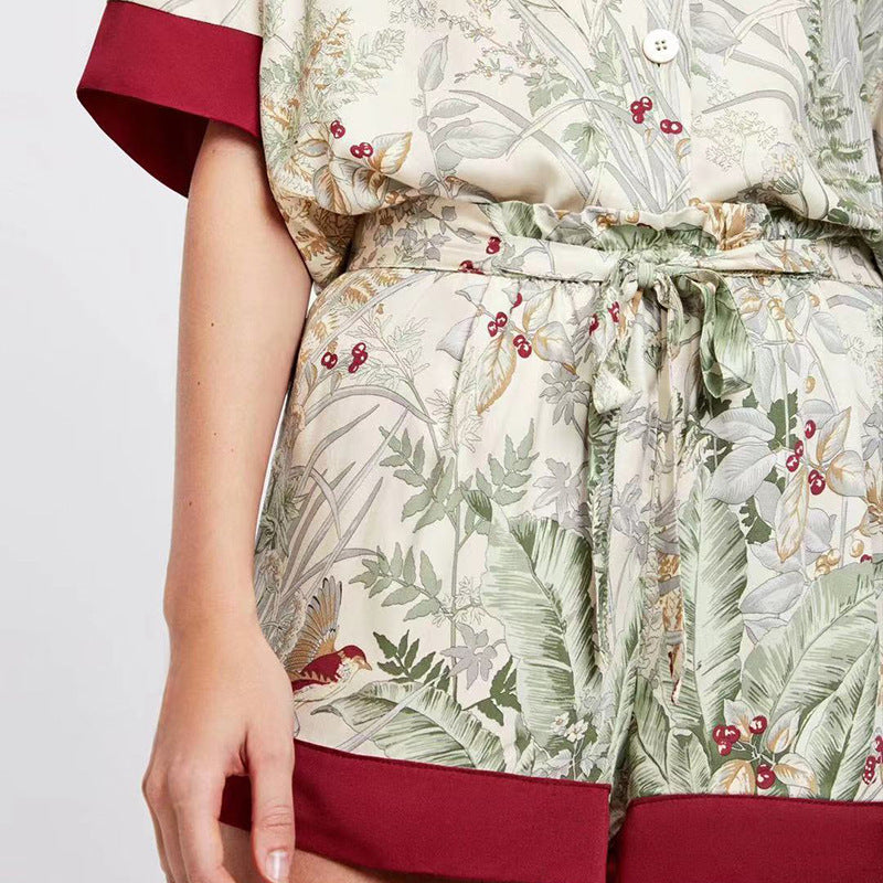 Women's Red Print Design Comfortable Robe Loungewear Set